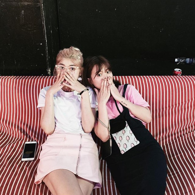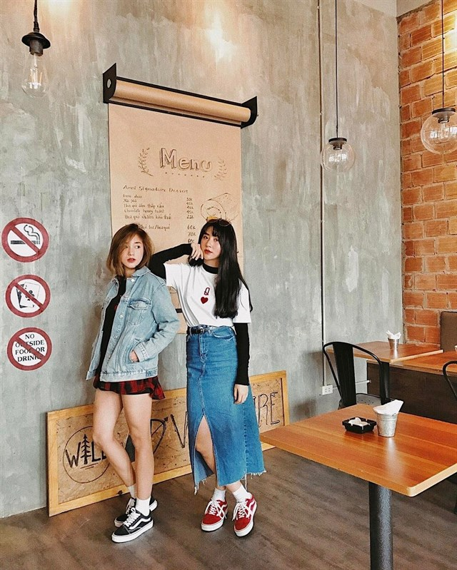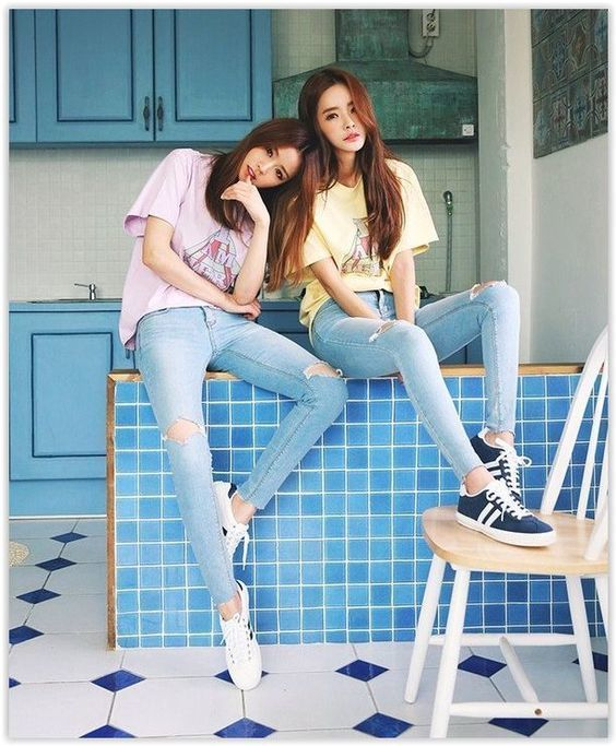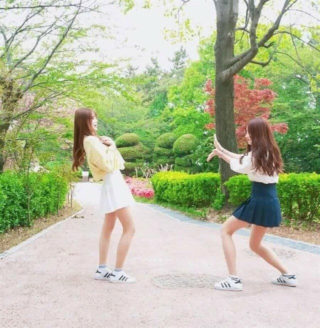 Sẽ thật vô cùng cuốn hút người khác khi xem ảnh khi tâm hồn đồng điệu giống nhau, đồ mặc giống nhau thôi thêm cái tạo dáng giống nhau nữa cho đủ hén. Không ai tiếc chi thả tim cho những cặp đôi cô gái dễ thương quá xa như vầy đâu.