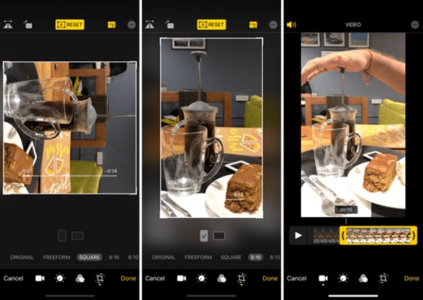 Chọn Video trong ứng dụng Ảnh, nhấn Edit và thao tác dựa trên những chế độ chỉnh sửa có sẵn như: cắt, xoay video, điều chỉnh độ sáng, độ bão hòa, độ tương phản,… Ngoài ra, iPhone 11 còn tích hợp sẵn các bộ lọc cho video, nhưng lưu ý rằng video càng dài thì việc áp dụng các chỉnh sửa sẽ mất thêm nhiều thời gian hơn.