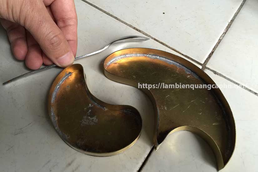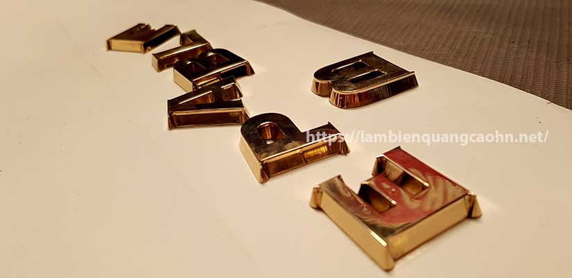 Ta thường thấy biển quảng cáo kiểu này là một khối kim loại khá dày. Nhưng thực tế nó là khối hộp tạo ra bởi các tấm đồng, inox hàn lại với nhau chắc chắn bằng thiếc được xử lý qua bởi ZnCl2. Cách tạo hình một khối đồng, inox dày như vậy tạo cảm giác biển chắc chắn, vững chãi và có tính trường tồn với thời gian