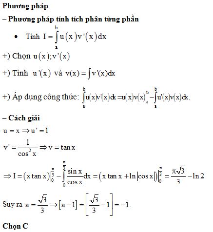 Tính Tích Phân Từ 0 đến Pi/3 Của X /cos^2 X = A Pi -b. Phần Nguyên