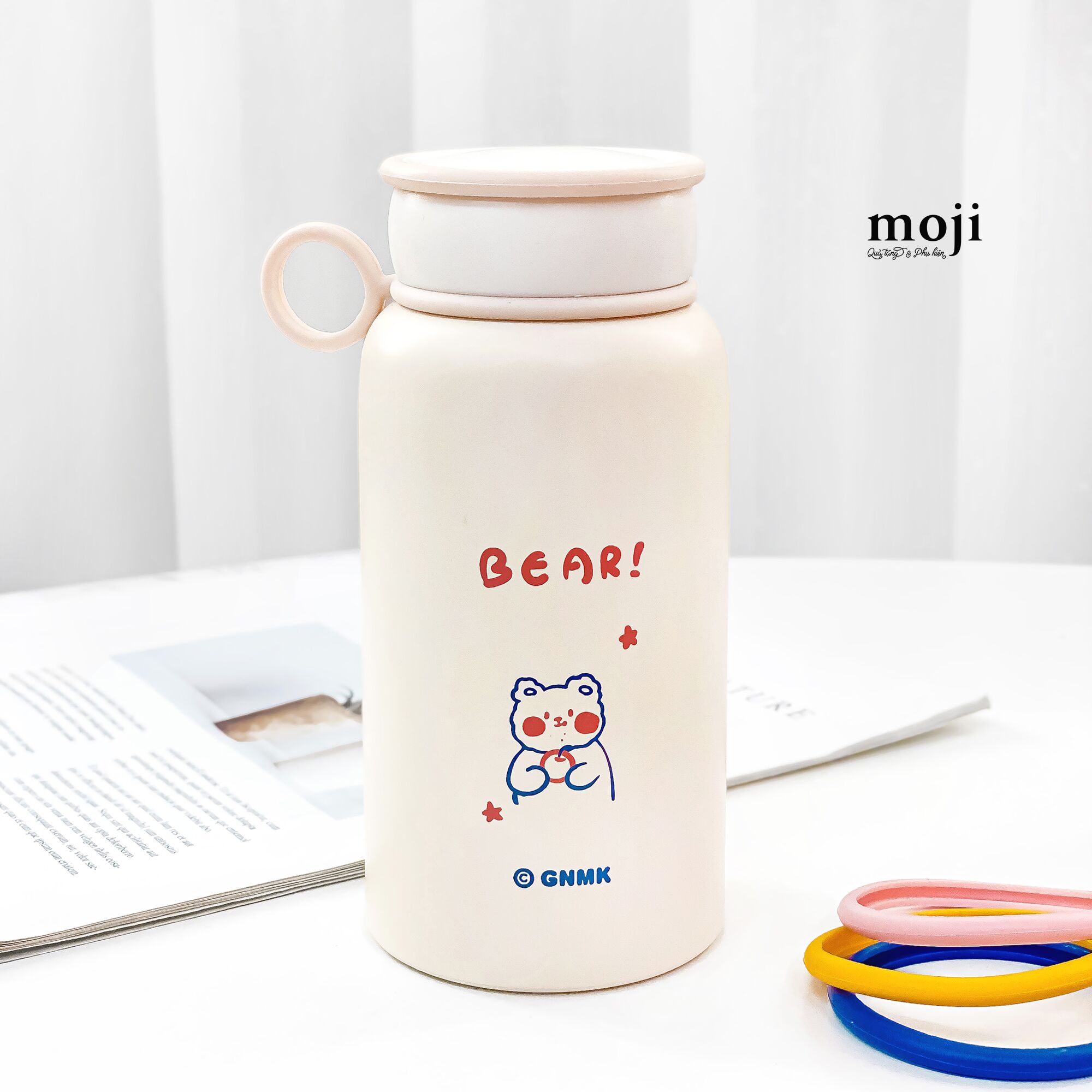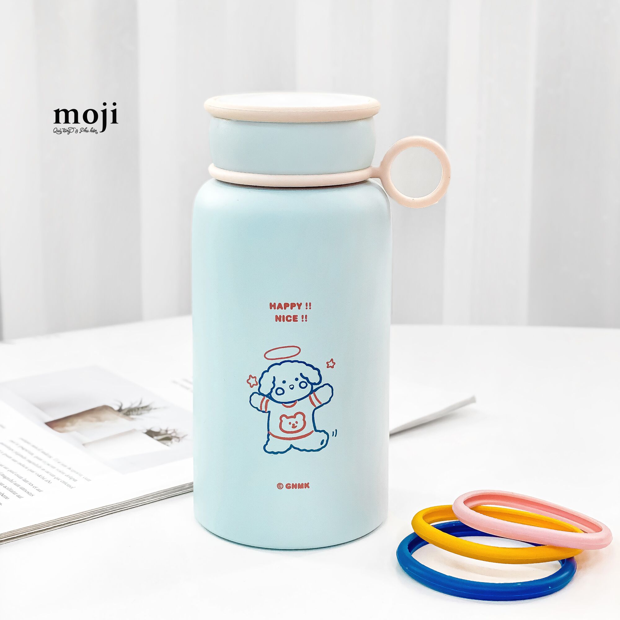 Bình Nước Giữ Nhiệt Baby Bear Cún Lông Xù Happy Nice 450ml - Moji