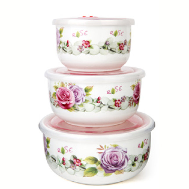 Bộ 3 Bát Sứ Hoa Hồng Có Nắp Hút Chân Không | - Mua Sắm