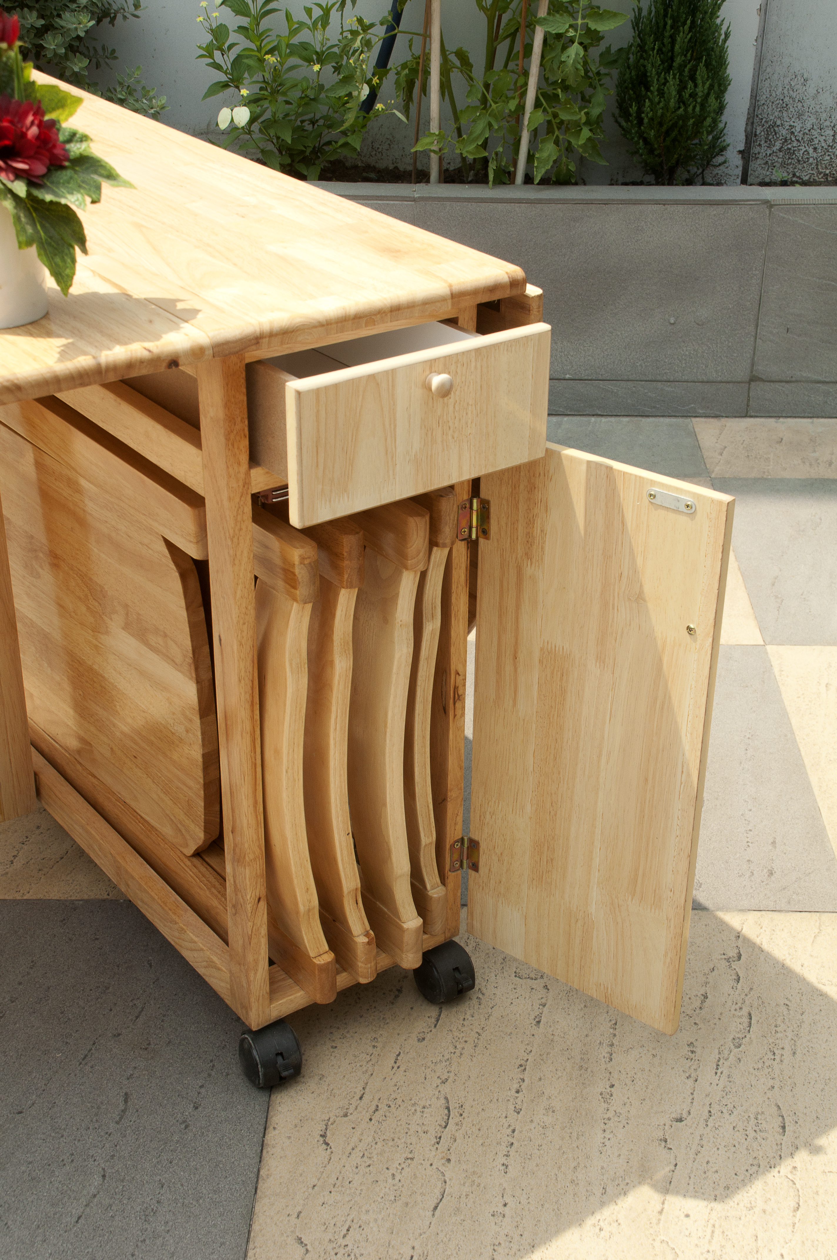 Với 4 ghế gấp siêu gọn gàng có thể nhét vào trong gầm bàn một cách dễ dàng và linh hoạt, tiết kiệm không gian tối đa. Mặt bàn được phủ bóng và bo góc đảm bảo độ an toàn khi sử dụng cho trẻ em, tăng thêm vẻ đẹp cho nội thất không gian nhà bạn, và tránh được va đập chấn thương.