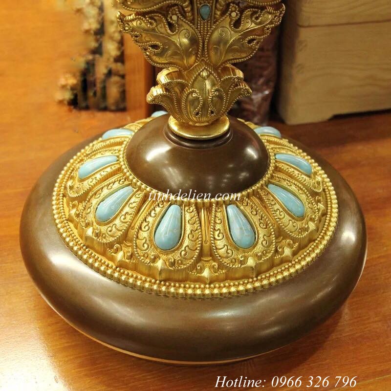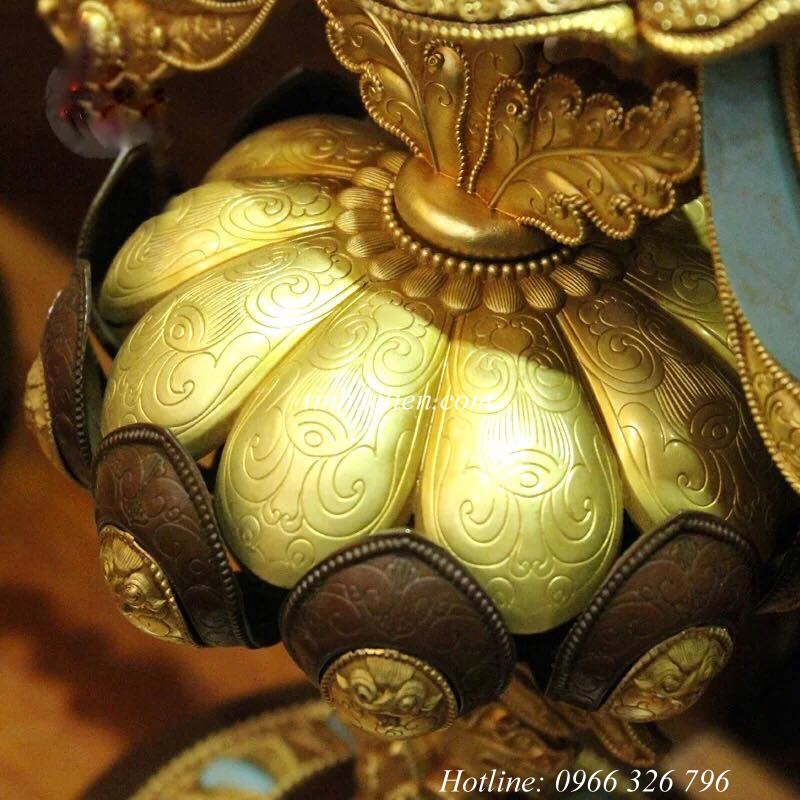 BỘ BÁT CÁT TƯỜNG THÙ THẮNG CÚNG PHẬT THÔNG TIN SẢN PHẨM : Tên sản phẩm : Bát Đại Cát Tường Thù Thắng Cúng Phật Mã sản phẩm : TD 110 Chất liệu : đồng nguyên chất Xuất xứ : Nepal Kích thước : cao 49 cm : đường kính rộng 26 cm ; rộng tổng thể 14 cm Trọng lượng : 44 kg / 1 bộ Quy trình sản xuất : Handmade(thủ công) Phong cách : Tâm Linh Phật giáo ; Nepal / Tây Tạng Ý NGHĨA : Theo quan niệm của Đạo Phật, Bát bảo hay còn gọi là BÁT CÁT TƯỜNG ( Tám vật quý, tám vật may mắn) khi các biểu tượng Cát Tường này xuất hiện ở đâu thì nơi đó có sự gia trì hoàn hảo. BÁT CÁT TƯỜNG khi được vẽ kết hợp lại với nhau thành một tổng thể thì được gọi là Trí Tuệ Bản Lai, chính là hóa thân Phật dưới hình thức biểu tượng Cát Tường để ban gia trì lợi ích chúng sinh 1. Lọng Bảo Cái : tượng trưng cho đầu của đức Phật. Lọng có ý nghĩa bảo vệ sự thiêu đốt của phiền não,đọa lạc và thoát khổ đau.Khi tặng Lọng Báu cho ai,ngụ ý cầu nguyện người đó luôn nhận được sự gia hộ và che chở của Tam Bảo