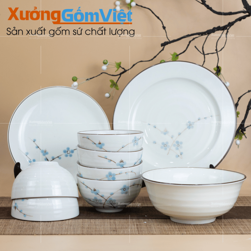 Bộ bát đĩa sứ cao cấp phong cách Nhật Bản thanh lịch