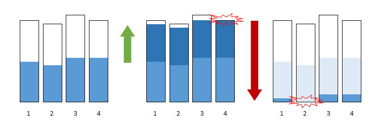 Cũng như hình minh họa 01 phía trên, ắc quy số 4 sẽ bị quá nạp và bị nóng, sôi hoặc thậm chí nổ. Và chắc chắn cũng mau hỏng hơn các bình còn lại.