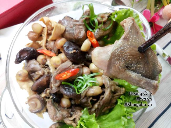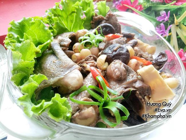 Từng miếng thịt mềm ngọt và thơm của bồ câu kết hợp vị giòn thơm của măng, nấm và hạt sen sẽ làm món bồ câu hầm nấm trở nên hấp dẫn.
