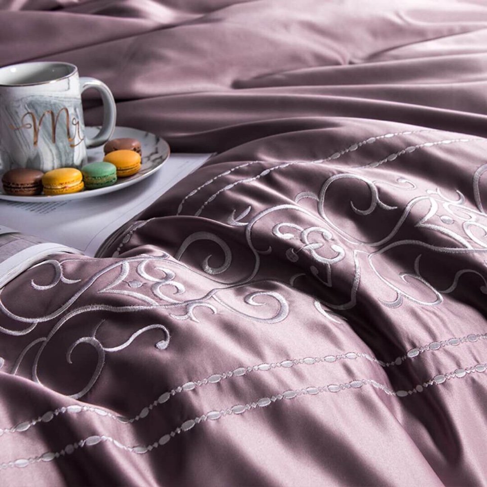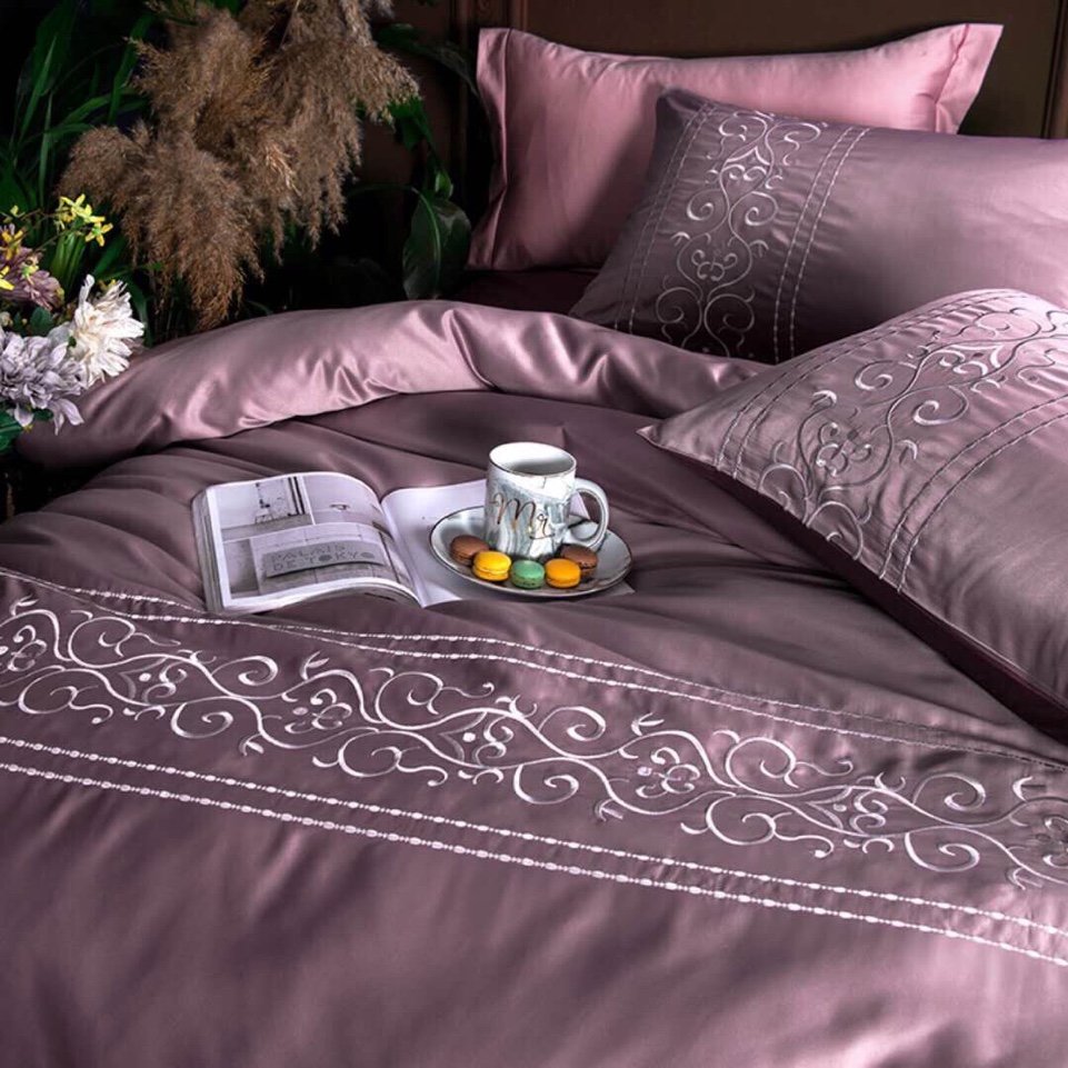 Bộ Chăn Ga Gối Lụa Tơ Tằm Thêu Hàn Quốc Cao Cấp - Tím Hồng - Tiki