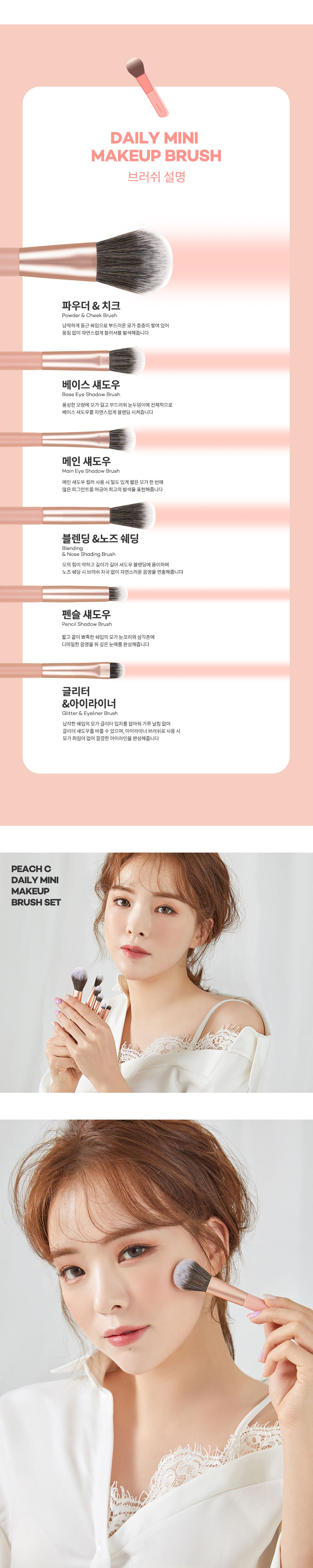 - Bộ Cọ Trang Điểm Tiện Lợi 6 Món Peach C Daily Mini Makeup Brush Set