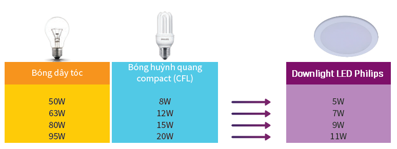 Đèn Downlight âm trần Led Philips tiết kiệm năng lượng đến 88% so với đèn dây tóc