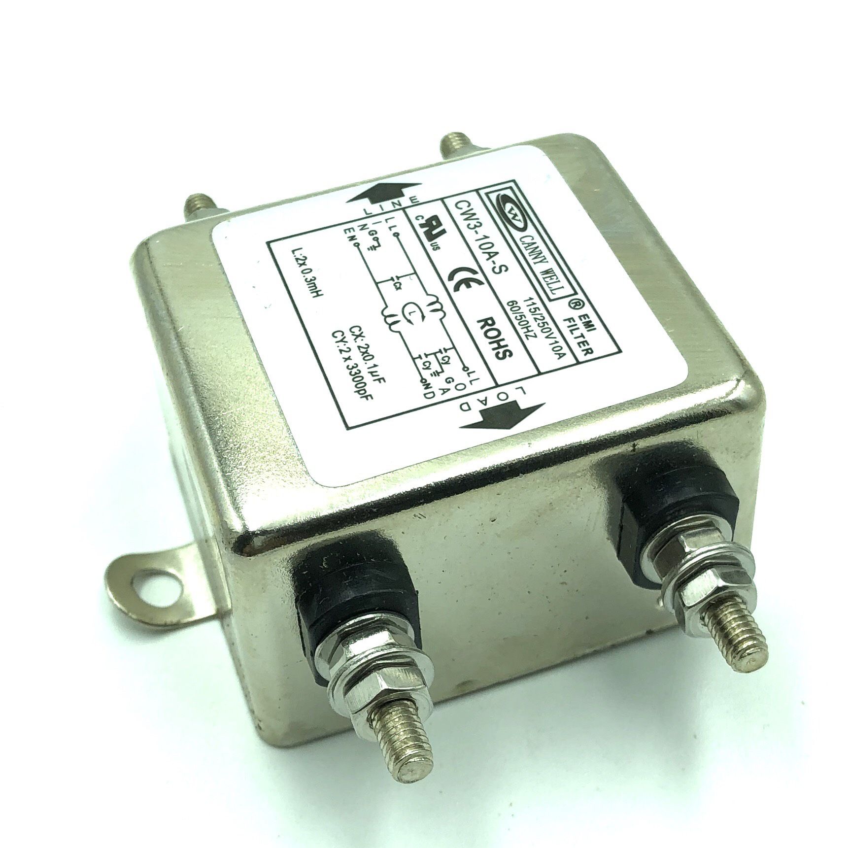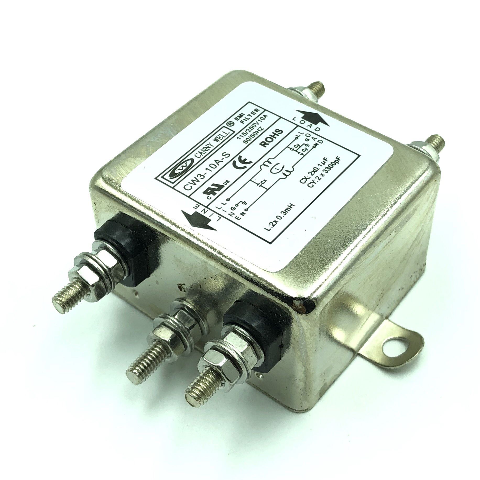 Bộ Lọc Nguồn 1 pha chống nhiễu 10A 115/250V CW3-10A-S chính hãng CANNYWELL