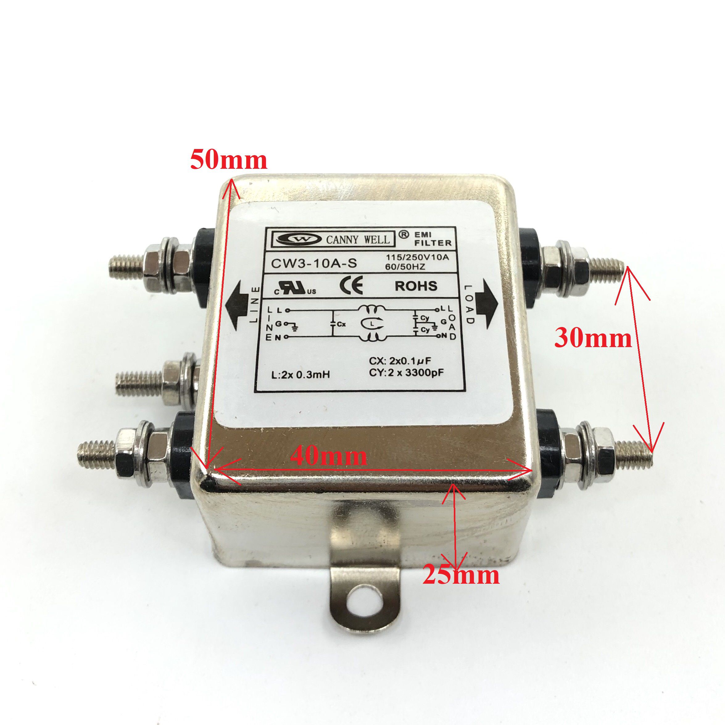 Bộ Lọc Nguồn 1 Pha Chống Nhiễu 10A 115/250V CW3-10A-S Chính ...