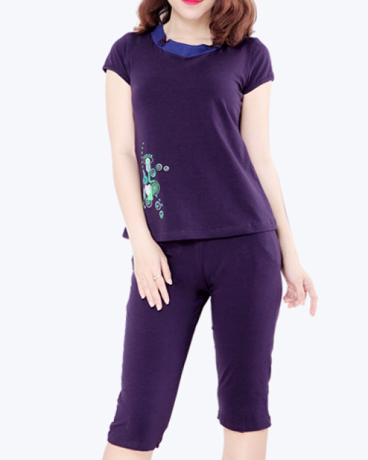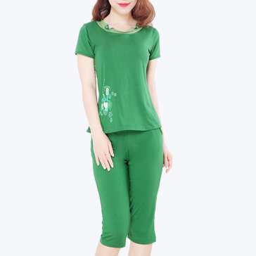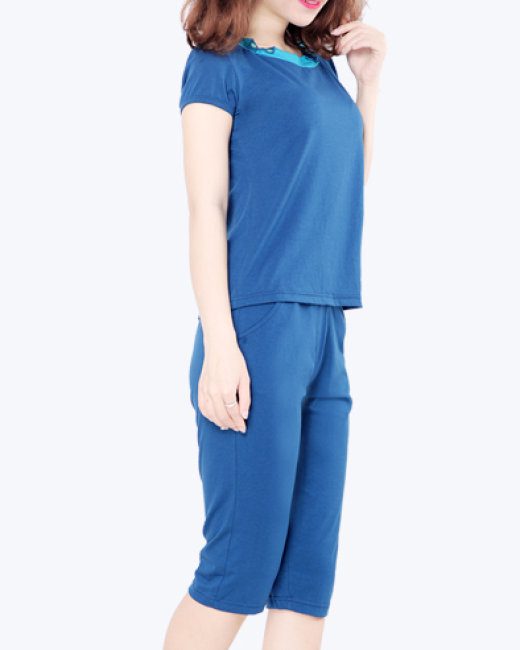 - Bộ mặc nhà kiểu dáng sunny cho người trung tuổi có kiểu dáng cổ cách điệu, quần lửng, cạp chun k thoải mái, dễ mặc.