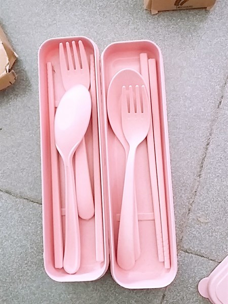 Bộ Muỗng Đũa Nĩa Nhựa Lúa Mạch Tặng Kèm Hộp M2
