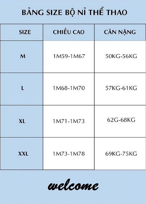 Bảng size: