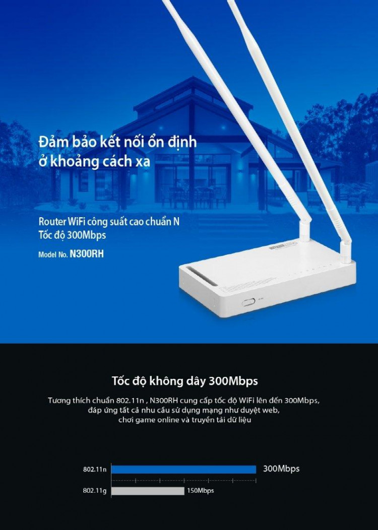 N300RH - Router Wi-Fi Công Suất Cao Chuẩn N 300Mbps