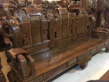 bộ bàn ghế tần thủy hoàng tay cột 12 gỗ hương đá