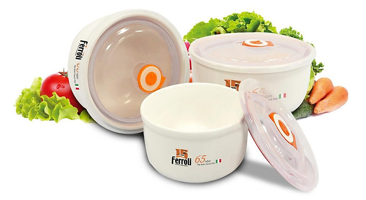 Bộ 3 Bát Sứ Cao Cấp Ferroli Có Nắp Hút Chân Không | Shopee Việt Nam