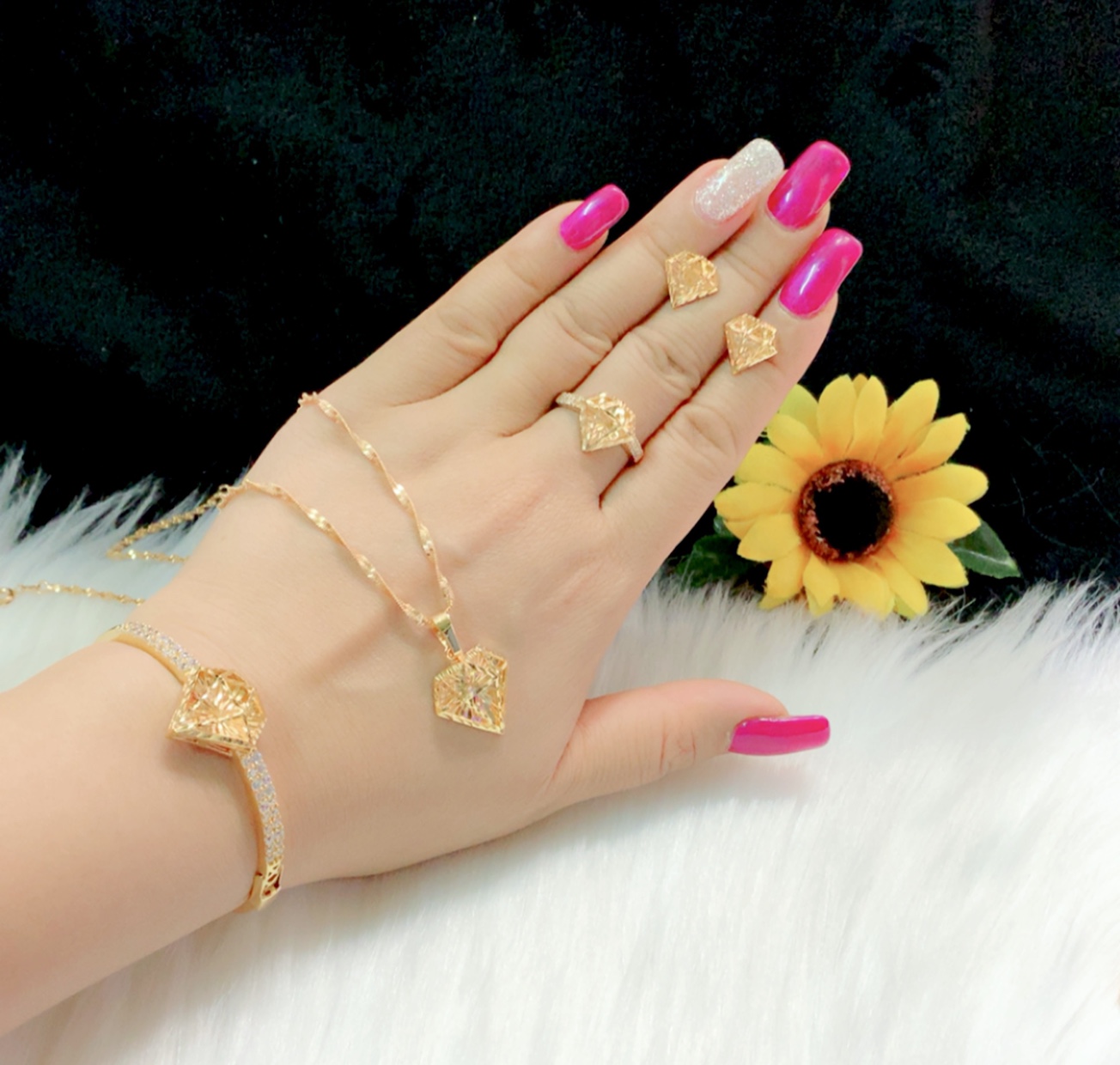 Freeship đơn từ 45k, giảm nhiều hơn cùngCam kết100% hàng thậtFreeship mọi đơnHoàn 200% nếu hàng giả30 ngày đổi trảGiao nhanh 2hGiá siêu rẻTrang chủĐồng hồ và Trang sứcTrang sứcBộ trang sứcBộ trang sức 4 món kim cương dát vàng 18k