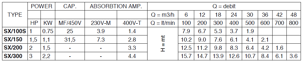 SX là dòng sản phẩm bơm bơm chìm nước thải với cánh quạt lốc xoáy được ứng dụng trong công nghiệp, nông nghiệp và dân dụng. Tất cả các vật liệu cấu thành bơm đều được làm bằng INOX để đảm bảo tối đa sự chống ăn mòn của bơm. Sản phẩm có 2 phớt cơ khí.