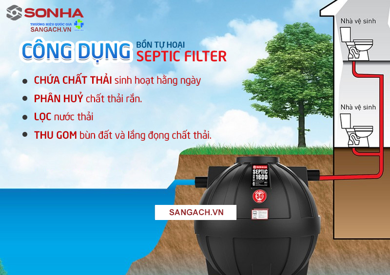 Theo đó, bồn tự hoại Sơn Hà Septic Filter 2500L có vai trò: