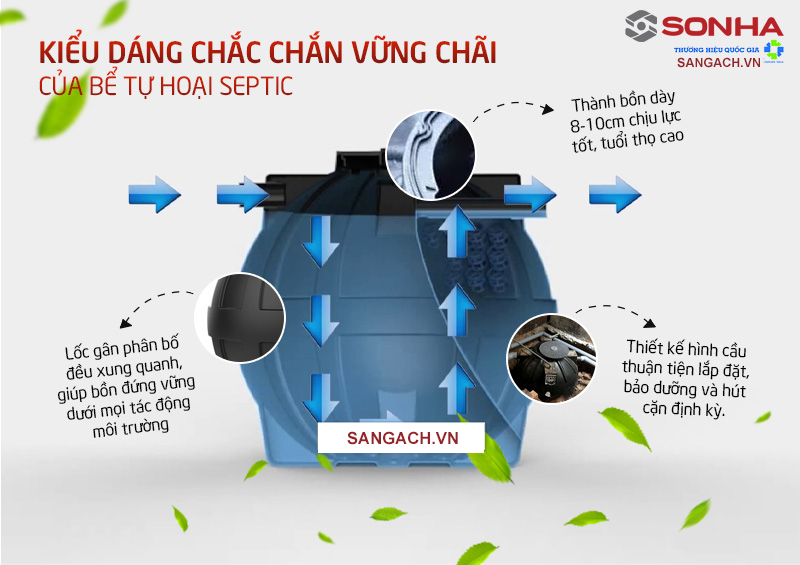 Điểm ưu việt trong thiết kế tính năng chỉ có tại bồn tự hoại Septic Sơn Hà