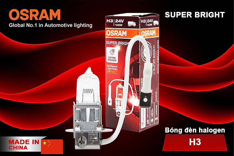 - Bóng đèn halogen OSRAM SUPER BRIGHT H3 24v 100w được chế tạo bằng thủy tinh cao cấp, được sản xuất và kiểm tra bằng quy trình nghiêm ngặt nhất.