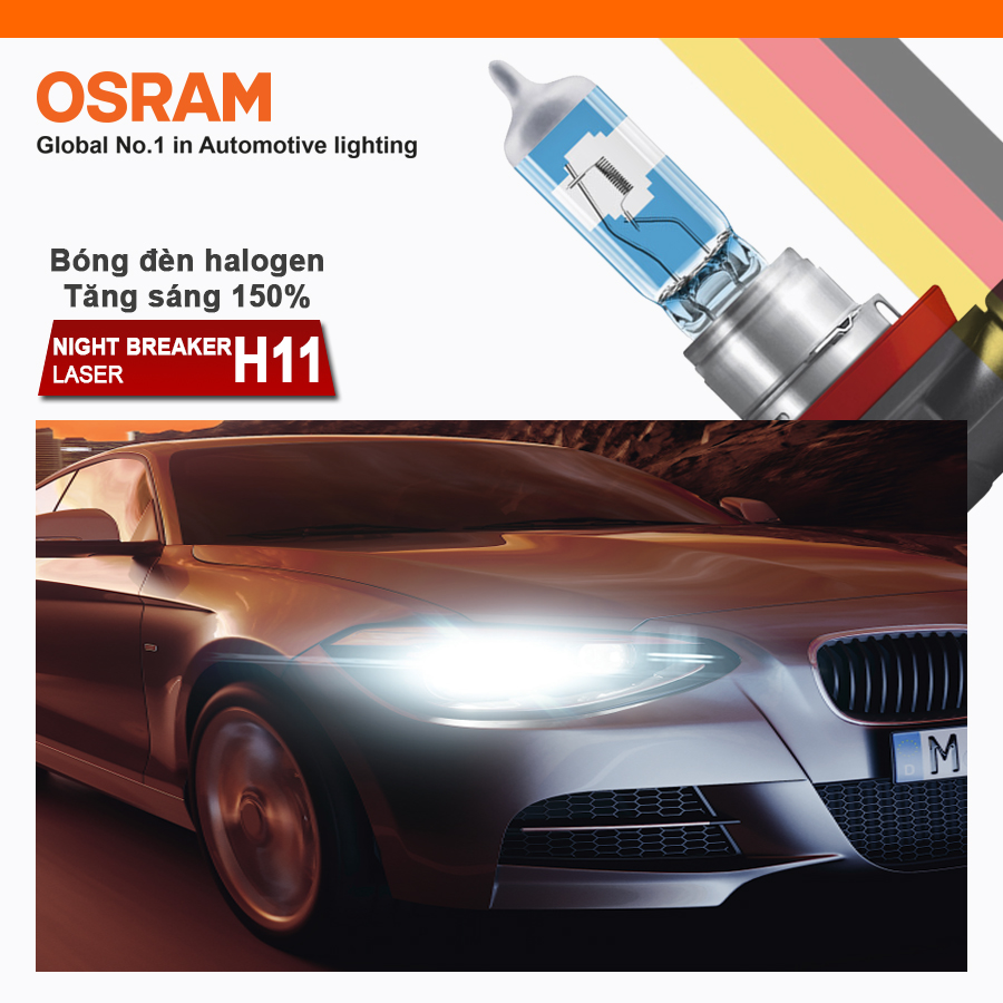 - Bóng đèn halogen tăng sáng 150% OSRAM NIGHT BREAKER LASER H11 12v 55w được chế tạo bằng thủy tinh cao cấp giúp hỗ trợ chiếu sáng hiệu quả trên những chặng đường dài.