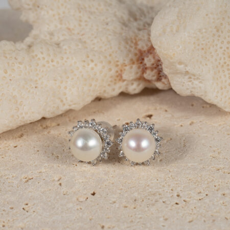 Bông Tai Ngọc Trai Trắng Viền Đá X SE1079