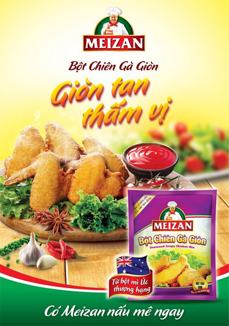 Bột Chiên Gà Giòn Meizan (50g) được sản xuất từ bột mì Úc thượng hạng.