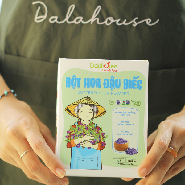 Bột hoa đậu biếc 3g có thành phần 100% từ hoa đậu biếc tươi, không chất bảo quản, không chất phụ gia, tan trong nước rất tiện sử dụng. Trong 1 muỗng bột hoa đậu biếc (3gr) tương đương với 2 chén hoa đậu biếc tươi (60gr) vậy nên bạn hoàn toàn có thể yên tâm về lượng đinh dưỡng của bột nhé.