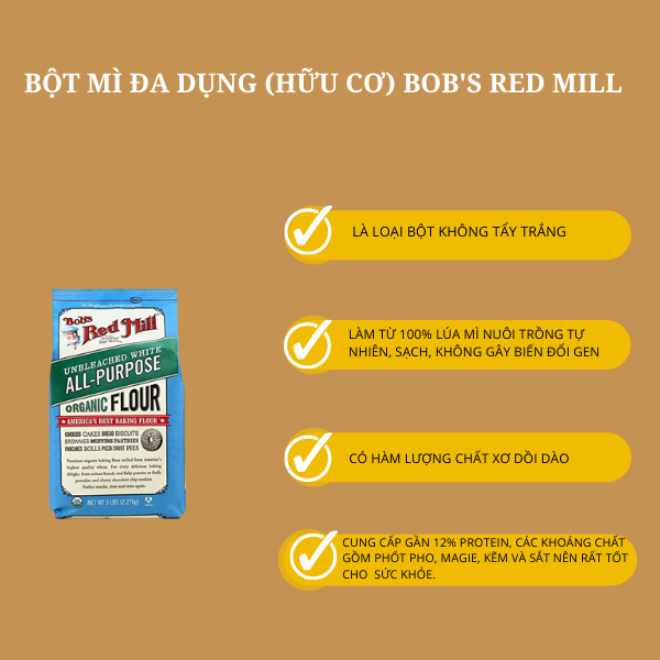 - Bột mì đa dụng (hữu cơ) Bob's Red Mill 2.27kg