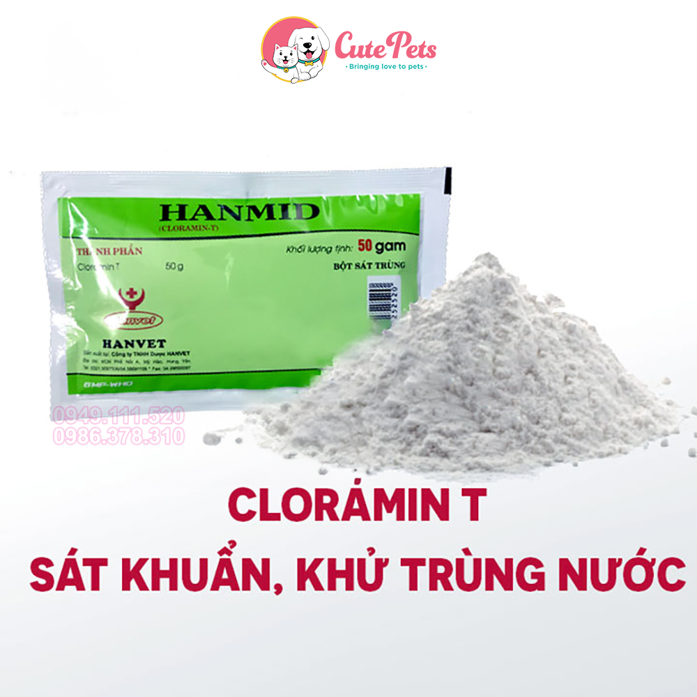 - Bột sát trùng Hanmid 50g Cloramin-T Dành cho thú cưng