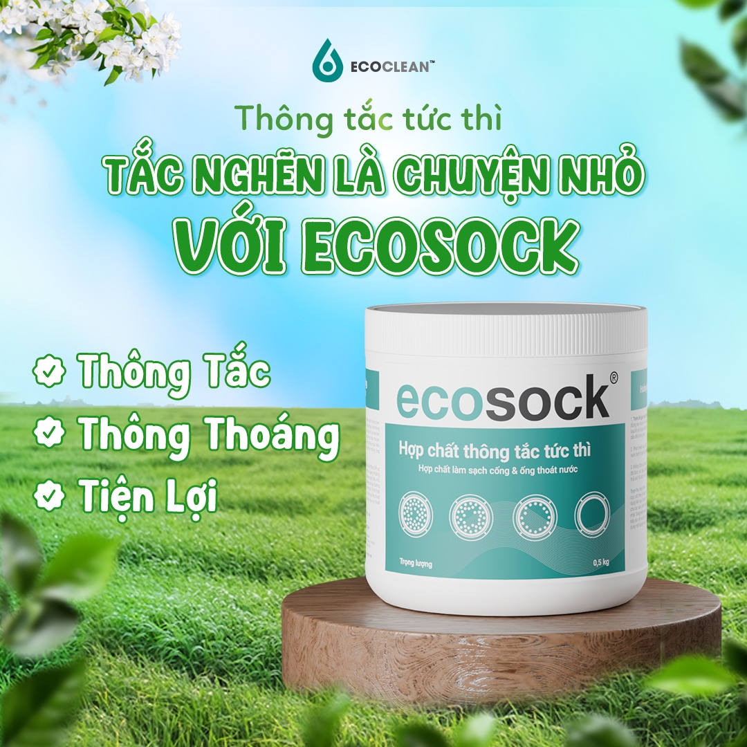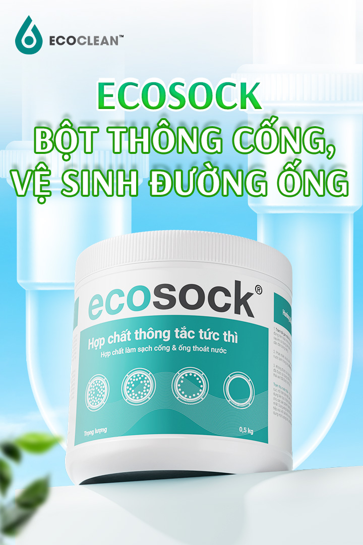 Bột thông cống EcoSock là sản phẩm được sản xuất trên dây chuyền hiện đại của Mỹ, tập hợp những hợp chất chuyên biệt để xử lý tắc nghẽn mà không gây ảnh hưởng đến đường ống. Đây là cách tối ưu thông tắc bồn rửa bát, xử lý tắc đường ống thoát nước sàn, bồn rửa mặt lavabo, bồn cầu… hiệu quả và an toàn nhất hiện nay.