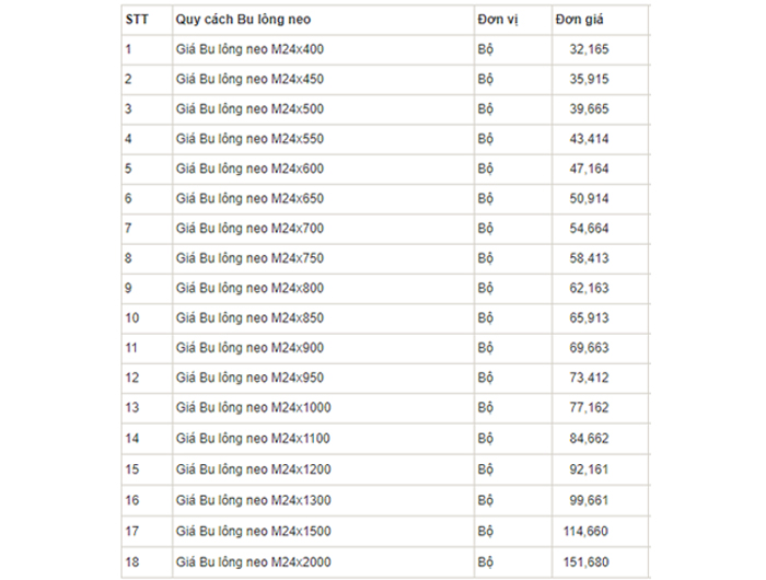 Tham khảo bảng báo giá bulong neo m24 trên thị trường hiện nay Giá của bulong neo m24 trên thị trường hiện nay không đồng đều, vì bulong neo m24 lại chia ra thành những cái nhỏ, chính bởi vậy phải tham khảo phổ biến bảng giá khác nhau để sắm một đơn vị đồng hành đáng tin cậy nhất.