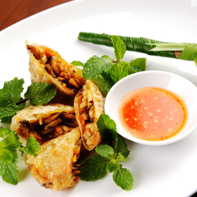 - Tiệc buffet chay hấp dẫn với nhiều món ăn ngon, lạ, bắt mắt hứa hẹn sẽ mang đến cho bạn một bữa tiệc chay tự chọn đúng nghĩa: Cà ri Kim Long, Bún Thái Hỏa Long, Nui xào Sen Trắng, Nem cuốn Chơn Tâm, Phở cuốn Vô ưu, Nem rán Thủy trúc, Nộm thập nhị nhân duyên, Nấm Hỷ Lạc chiên xù…
