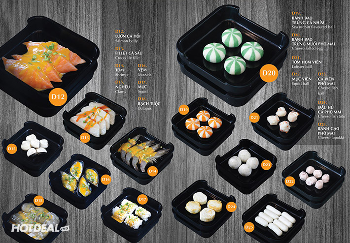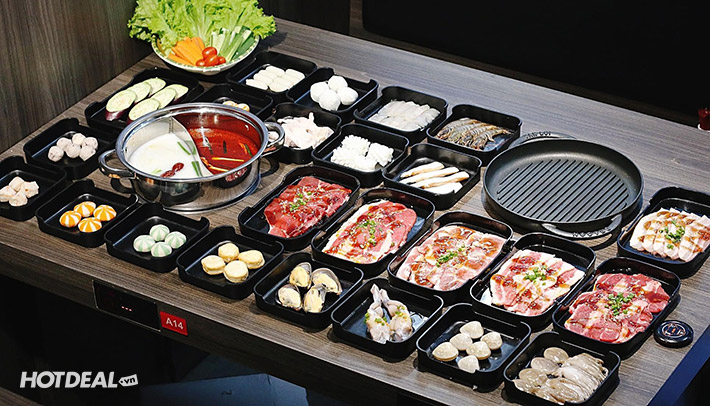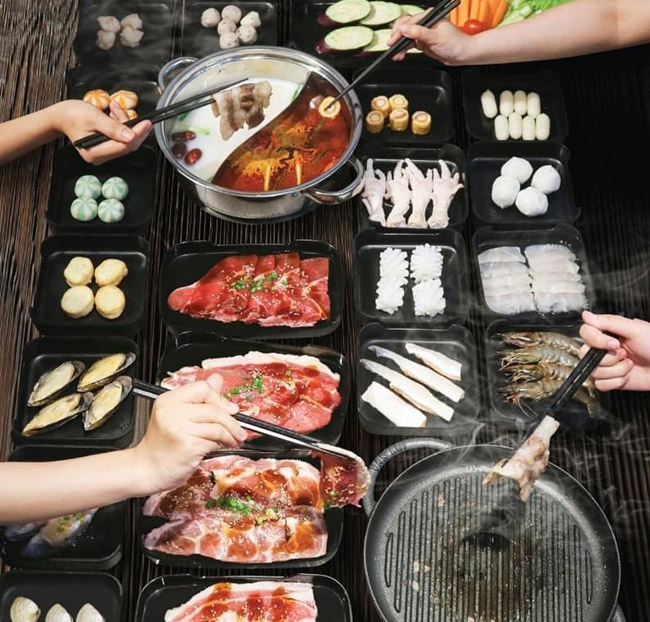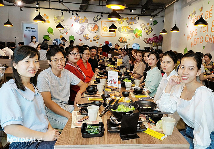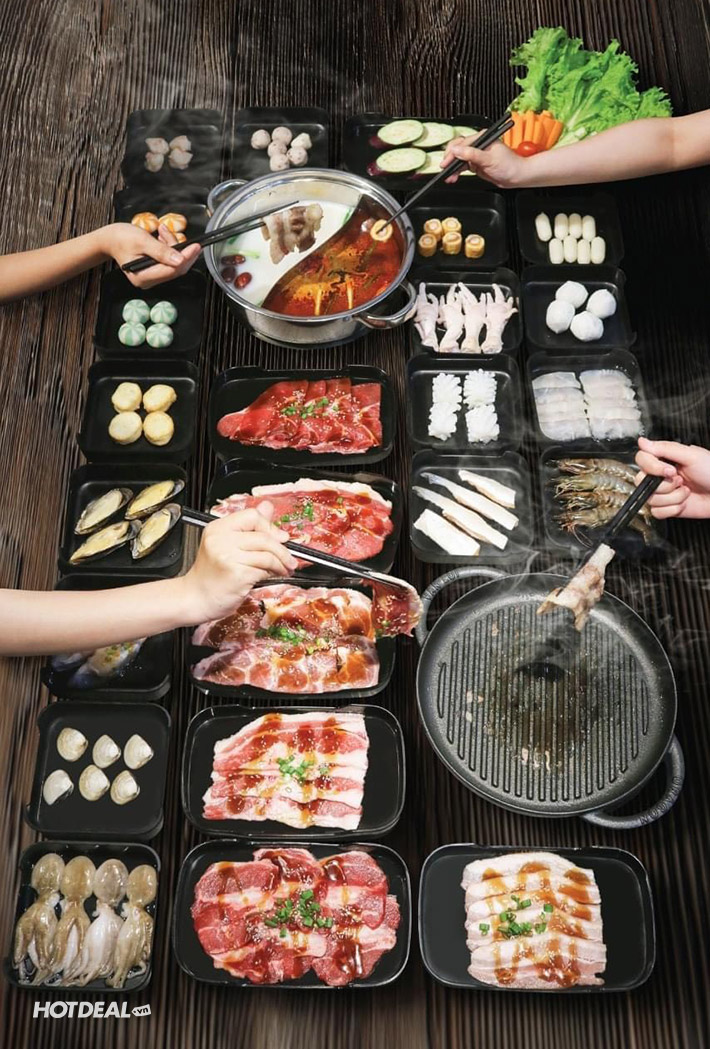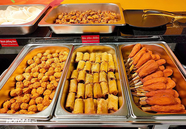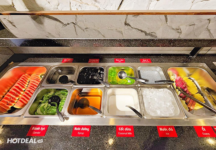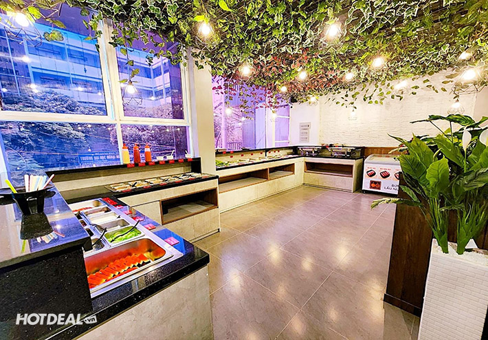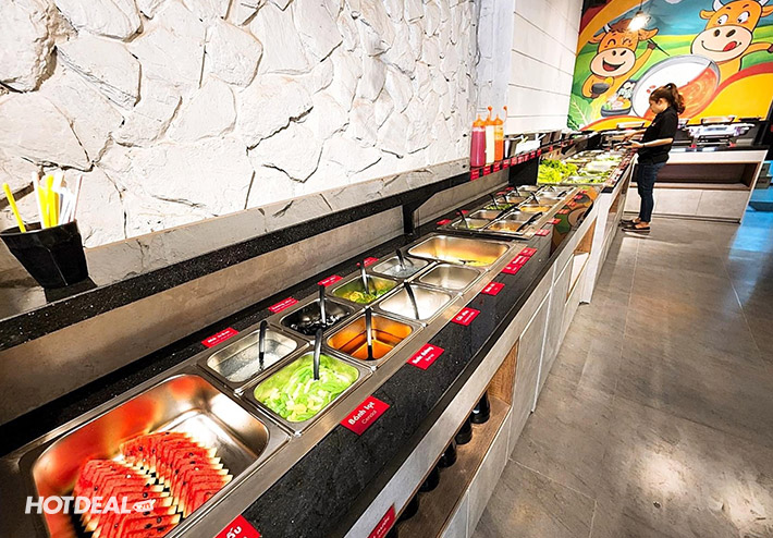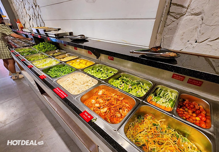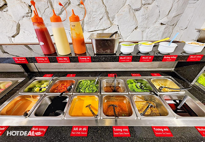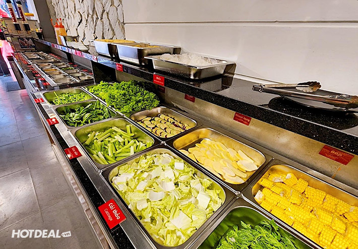 - Miễn phí không giới hạn quầy buffet line: các loại rau, nấm, kem tươi và nước uống.
