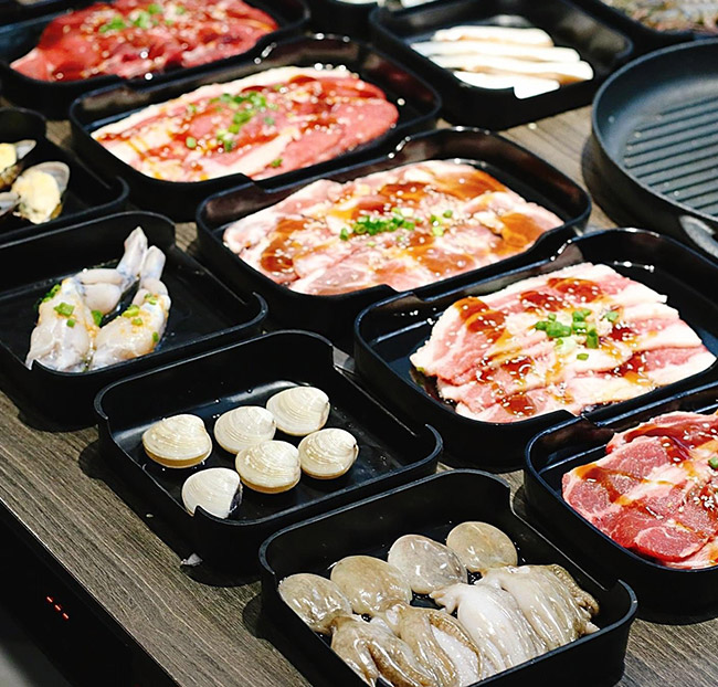 Với bữa tiệc nướng này, thực khách sẽ có cơ hội thưởng thức rất nhiều món hấp dẫn như: Lõi vai bò Mỹ, Gàu bò Úc, Sườn bò Mỹ, Bắp hoa bò Mỹ, Ba rọi bò Mỹ, Sườn heo, Thịt gà, Bò cuộn lá lốt… Những nguyên liệu chất lượng, hảo hạng như thêm hương, thêm vị nhờ các loại nước sốt được pha chế đặc biệt, dẫn dắt vị giác qua nhiều cung bậc cảm xúc khác nhau.