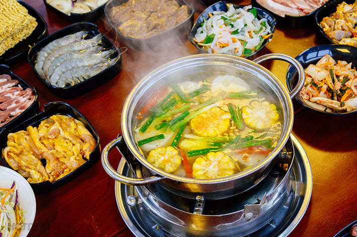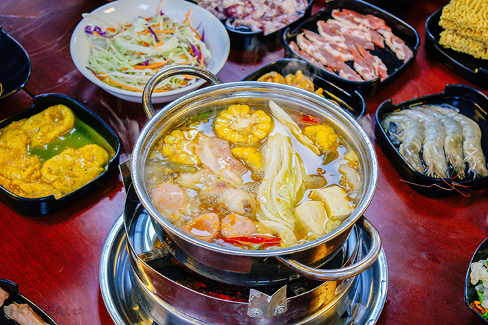 Sau khi thưởng thức món nướng no nê, bạn cũng đừng quên "dành" bụng để đến với 1 trong 2 hương vị lẩu Thái hoặc lẩu Kim Chi tại Galbi Brother. Nguyên liệu nhúng đa dạng đang chờ bạn thưởng thức như: Ba chỉ lợn, Nạc vai, Lòng non, Sụn non, Mề gà, ức gà, xúc xích, ngao... ăn kèm với lẩu sẽ không thể thiếu là rau ăn lẩu, đậu phụ, nấm...