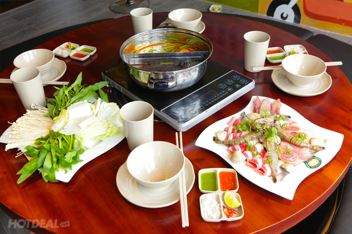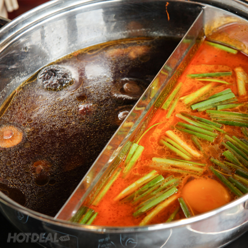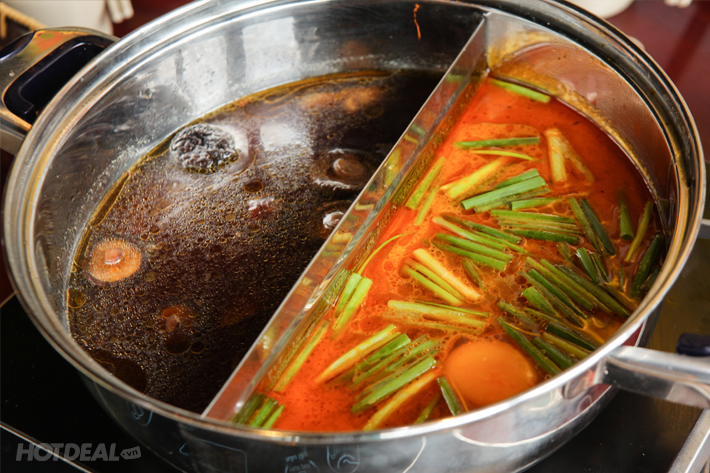 Đồ ăn kèm lẩu cũng không kém phần phong phú là các loại hải sản tươi ngon đến các loại thịt đặc sản hấp dẫn: ba chỉ bò Mỹ, tôm sú, đùi gà, mực, cá... Đi kèm với đó là đa dạng các loại rau lẩu ăn kèm. Đặc biệt là nồi lẩu được thiết kế 2 ngăn mang đến cho thực khách thêm trải nghiệm mới mẻ.