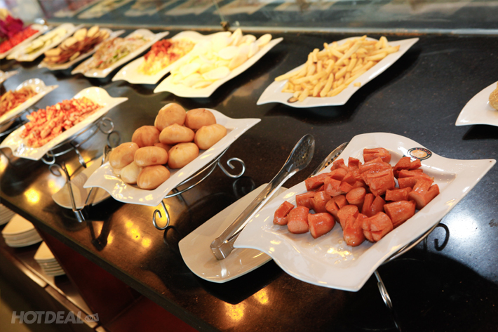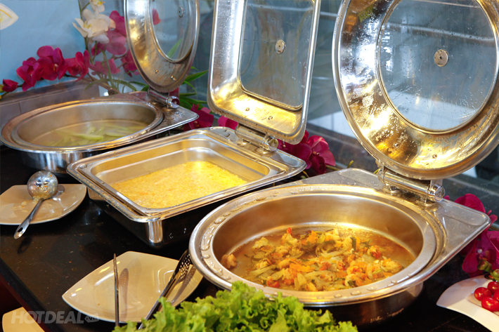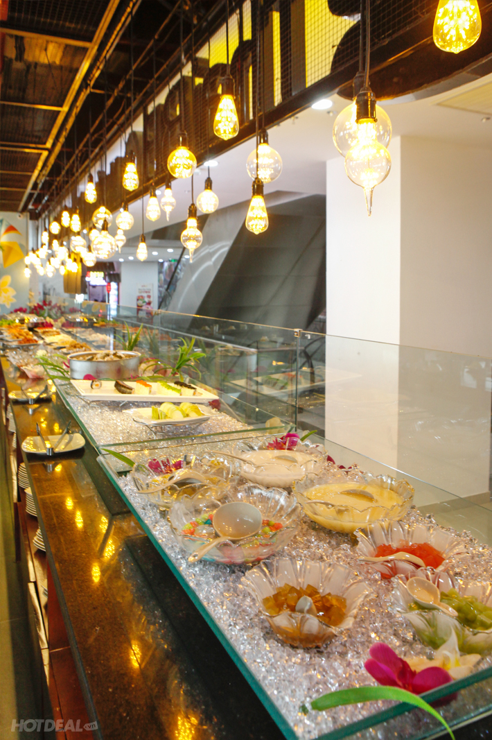 - Thực đơn Buffet đa dạng, phong phú với nhiều lựa chọn: các món nướng, lẩu, quầy line, khai vị, món nóng, tráng miệng... - Nguyên liệu đều được tuyển chọn kỹ lưỡng, tươi ngon và được chế biến bởi bàn tay của đầu bếp tài hoa, vừa lưu giữ hương vị tự nhiên của thực phẩm vừa đem đến những nét ẩm thực mới lạ qua các loại nước chấm và sốt tẩm ướp đặc biệt. - Vị trí nhà hàng thuận tiện, không gian rộng rãi, sang trọng, ấm cúng, là điểm hẹn lý tưởng cho những buổi tụ tập, hẹn hò bạn bè, người thân. - Sự phục vụ nhiệt tình, luôn thân thiện, vui vẻ và tận tâm của đội ngũ nhân viên mang đến những giờ phút thoải mái cho Quý khách hàng. - Menu tham khảoĐiều kiện sử dụng.