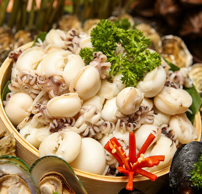- Đặc biệt, quầy hải sản đa dạng với các loại hải sải tươi sống đến từ các vùng biển khác nhau của Việt Nam như tôm hùm, tôm sú, vẹm xanh, mực, bạch tuộc, cá… Hải sản được chế biến theo phong cách riêng của nhà hàng, hương vị mới mẻ, thơm ngon khó cưỡng.