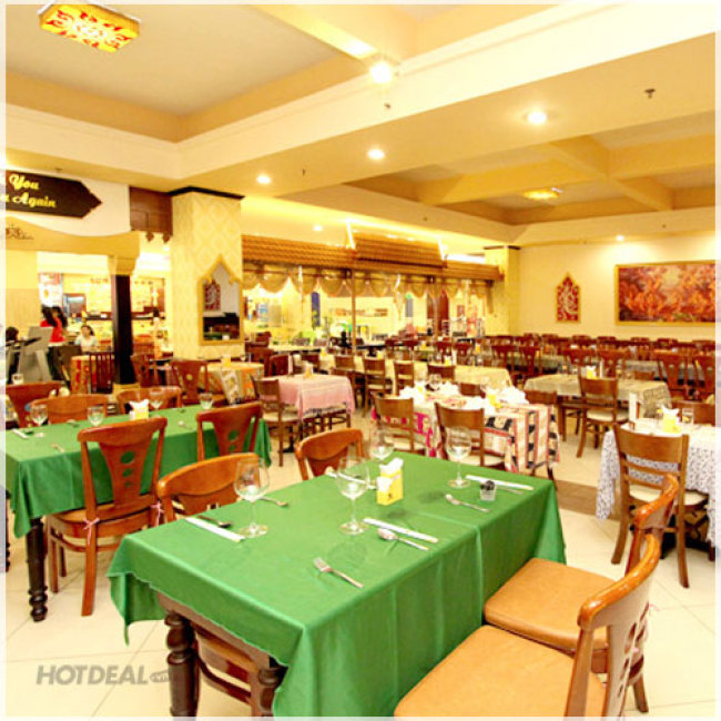 - Nhà hàng có thực đơn phong phú với hơn 200 món ăn Thái truyền thống như thịt heo nướng sa tế, gỏi đu đủ hải sản, gỏi đậu rồng…; hủ tiếu xào kiểu Thái (Phad Thai), Guay Tieu Tom Yam (Hủ tiếu chua cay Thái), cơm chiên trái thơm… súp tôm chua cay (Tom Yam Goong)… Có nhiều món chay cho thực khách lựa chọn.