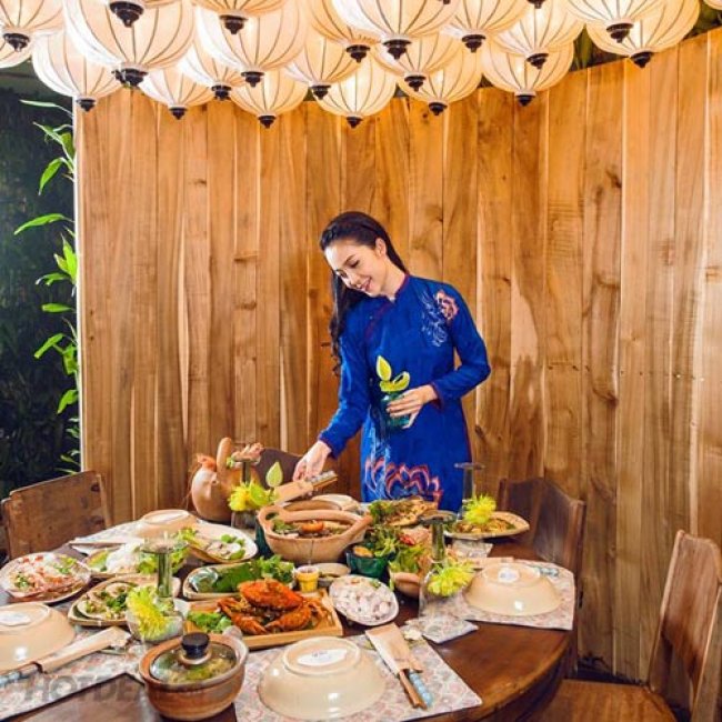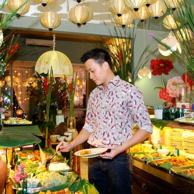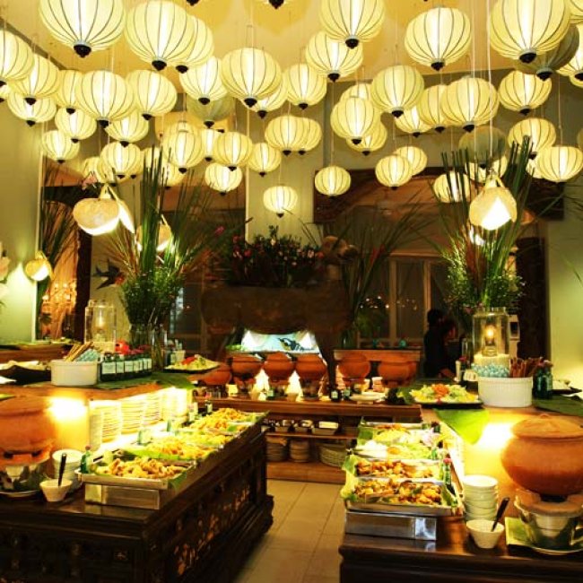 - Buffet tối với thực đơn 90 món đa dạng, bao gồm các món ăn truyền thống như cơm chiên, hải sản, gỏi, cuốn, lẩu….