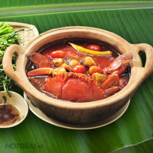 Với deal lần này, bạn sẽ được chiêu đãi một buổi Buffet món Việt vô cùng hấp dẫn. Đến đây, bạn có thể tìm thấy đầy đủ các thể loại từ cuốn, gỏi, đến các loại hải sản, cơm ăn kèm món kho, chiên... và cả các món đặc sản mang tính địa phương như bún bò, bún nem, bún thịt nướng... Để khai vị, không gì thích hợp hơn các món tôm cuốn cải xanh, chả bò nướng lá chuối... Đặc biệt, bạn sẽ ít nhiều bất ngờ khi bắt gặp những món ăn mang hương vị đồng quê mộc mạc như rau muống xào tỏi, rau luộc kho quẹt, ốc bươu nướng cây sả.... đơn giản thôi, nhưng có thể khiến bạn thòm thèm muốn ăn mãi.