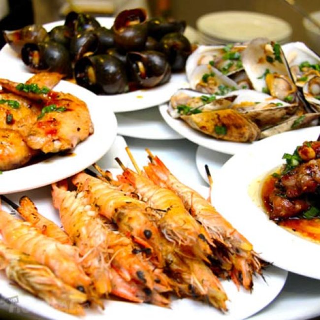 Kế đến, chắc chắn bạn sẽ không thể cưỡng lại được sức hấp dẫn từ các món nướng nóng sốt, điển hình như: Chân gà nướng muối ớt, Sườn nướng BBQ, Heo nướng xiên, Bò nướng Tam Sắc, Ức gà nướng Mustar…. Các loại gia vị được gia giảm phù hợp, cùng công thức tẩm ướp điệu nghệ tại đây hoàn toàn có thể khiến bạn phải xuýt xoa vì độ ngon miệng. Mặt khác, bạn còn có thêm một lựa chọn cũng hấp dẫn không kém từ quầy nướng, chính là các món hải sản, bao gồm: Sò lông nướng mỡ hàng, Tôm nướng muối ớt, Ốc bươu nướng tiêu… Bên cạnh đó, để thỏa mãn niềm đam mê ăn uống đang dần đạt “đỉnh điểm”, bạn có thể tham khảo thêm các món Lẩu hải sản chua cay, Cơm chiên hồng ngọc, Gà nấu đậu ăn kèm với bánh mỳ…