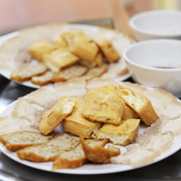 Trái với vị mặn mà của món Bún thịt chân giò mắm tép là món bún đậu chiên giòn/ đậu tươi. Thực khách hãy thử một lần dùng thử đậu tươi mới thưởng thức hết vị ngon tinh tế mà mộc mạc của đậu mơ tươi. Cảm giác mềm mại, bùi béo như tan dần nơi đầu lưỡi, thêm một chút mắm tôm vừa miệng sẽ khiến thực khách rất thích thú và nhớ mãi món ăn này.