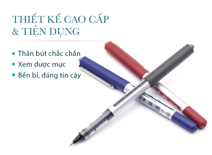 - Màu thân bút: 3 màu (Bạc / Đen, Bạc / Xanh, Bạc / Đỏ)