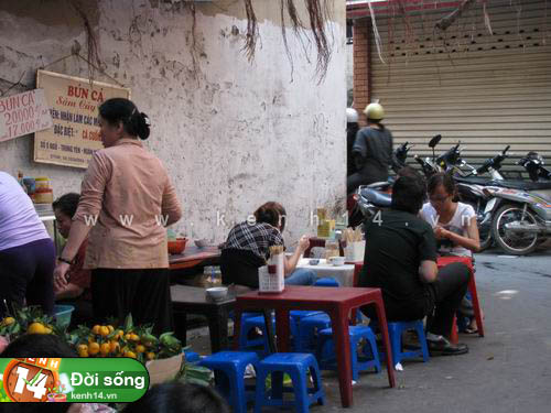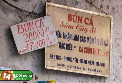 Hàng ăn này nằm bên trong ngõ Trung Yên (nhà số 5, ngay đoạn miếu Trung Yên, phía dưới cây si cổ thụ í) trên phố Đinh Liệt, quận Hoàn Kiếm. Họ bán hàng từ 8h sáng đến 6h chiều nhé! Giá một miếng cá cuốn là 5k còn một bát bún thì có giá 17k – 20k.