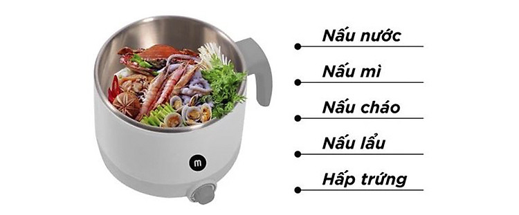 Ca nấu này dùng để nấu mỳ, nấu lẩu, luộc trứng, đun nước. Ca nấu siêu tốc đa năng MK214 kèm xửng hấp rất thích hợp cho 1- 2 người ăn hoặc mang theo khi đi du lịch. Tiện dụng hơn nữa khi bạn nấu đồ ăn nhanh ở cơ quan.
